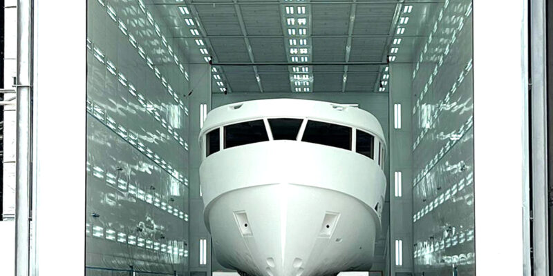 A large industrial spray booth for the marine industry